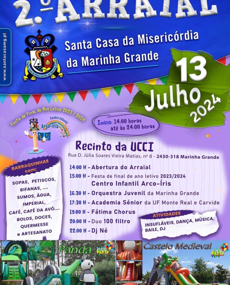 Venha fazer parte do 2.º Arraial da Santa Casa da Misericórdia da Marinha Grande dia 13 de Julho pelas 14h com Barraquinhas e muitas atividades nas quais: