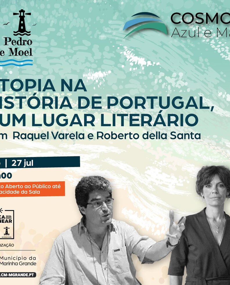 O Edifício Cosmos Azul e Mar, em São Pedro de Moel, recebe a tertúlia "Utopia na História de Portugal, num lugar literário", com Raquel Varela e Roberto Della Santa, no próximo sábado, 27 de julho, pelas 18h00, organizada pelo Município da Marinha Grande no âmbito da programação da época balnear.