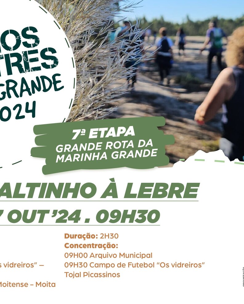 O Município da Marinha Grande realiza o passeio pedestre “Um santinho à lebre”, no próximo domingo, 27 de outubro de 2024, pelas 09h00, cuja participação é gratuita.