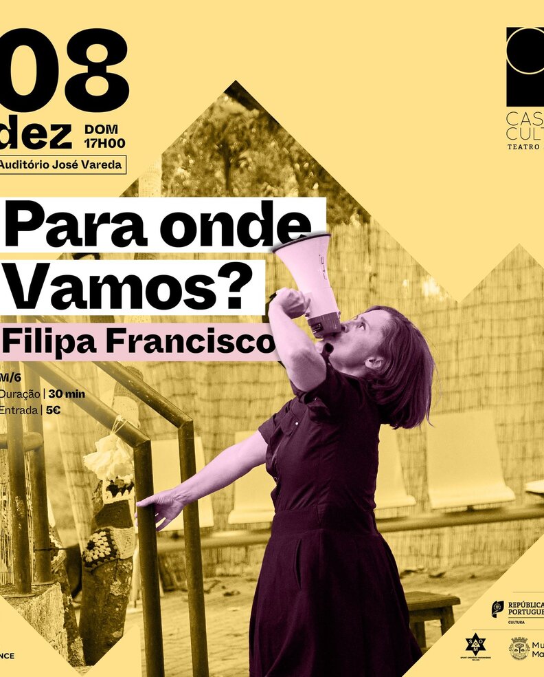 “Para onde vamos?” é uma performance de Filipa Francisco que vai ser apresentada pelo Município da Marinha Grande no dia 8 de dezembro, pelas 17h00, no Auditório Dr. José Henriques Vareda, no Sport Operário Marinhense.