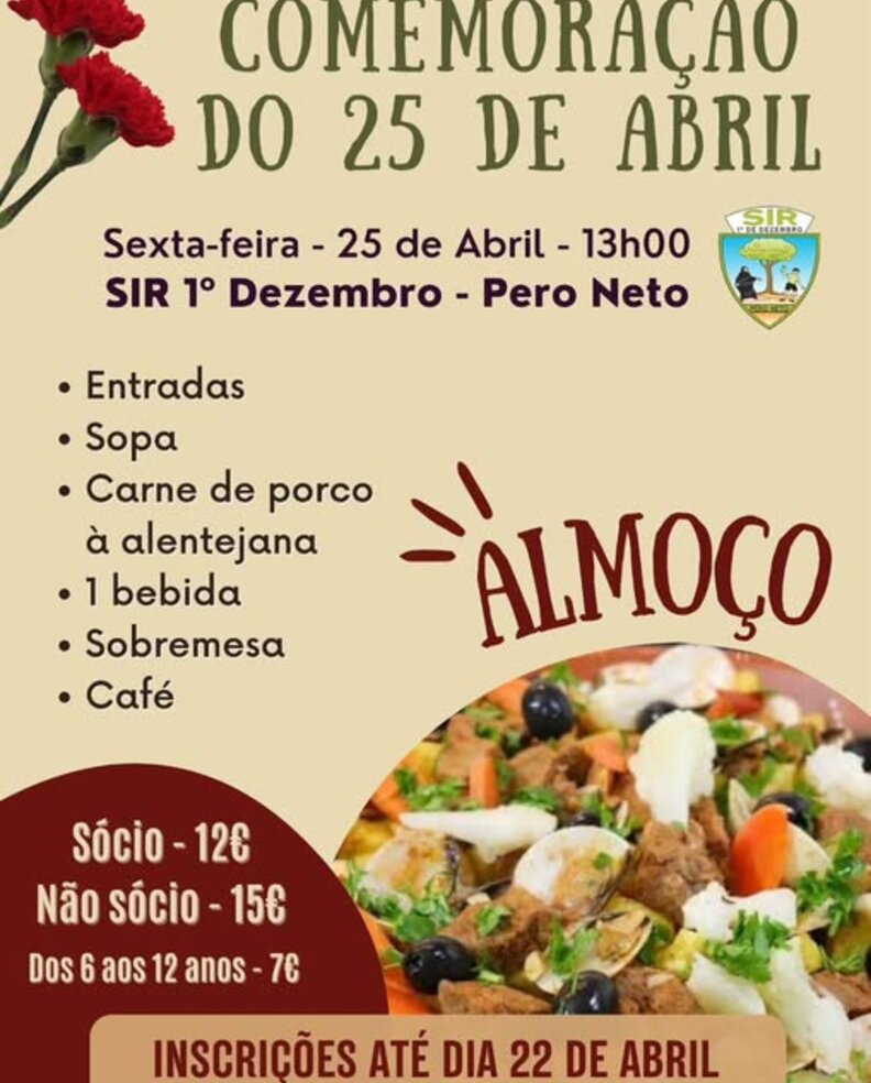 ALMOÇO COMEMORATIVO DO 25 DE ABRIL SIR 1º DE DEZEMBRO