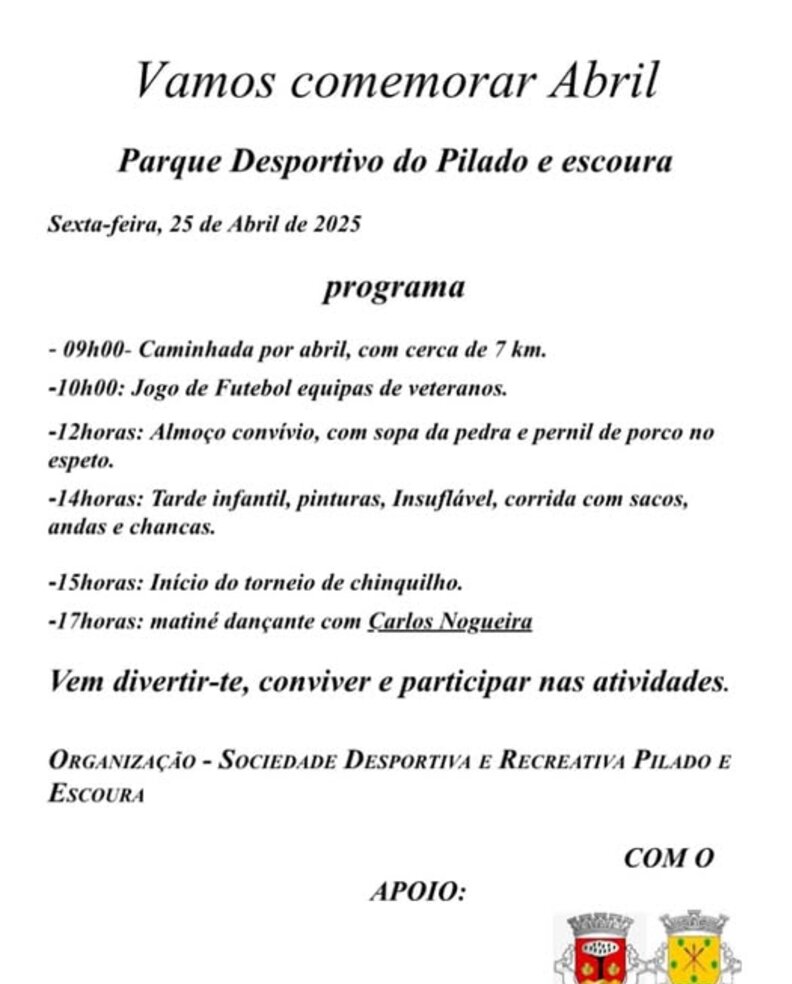 COMEMORAÇÃO DO 25 DE ABRIL – PILADO E ESCOURA