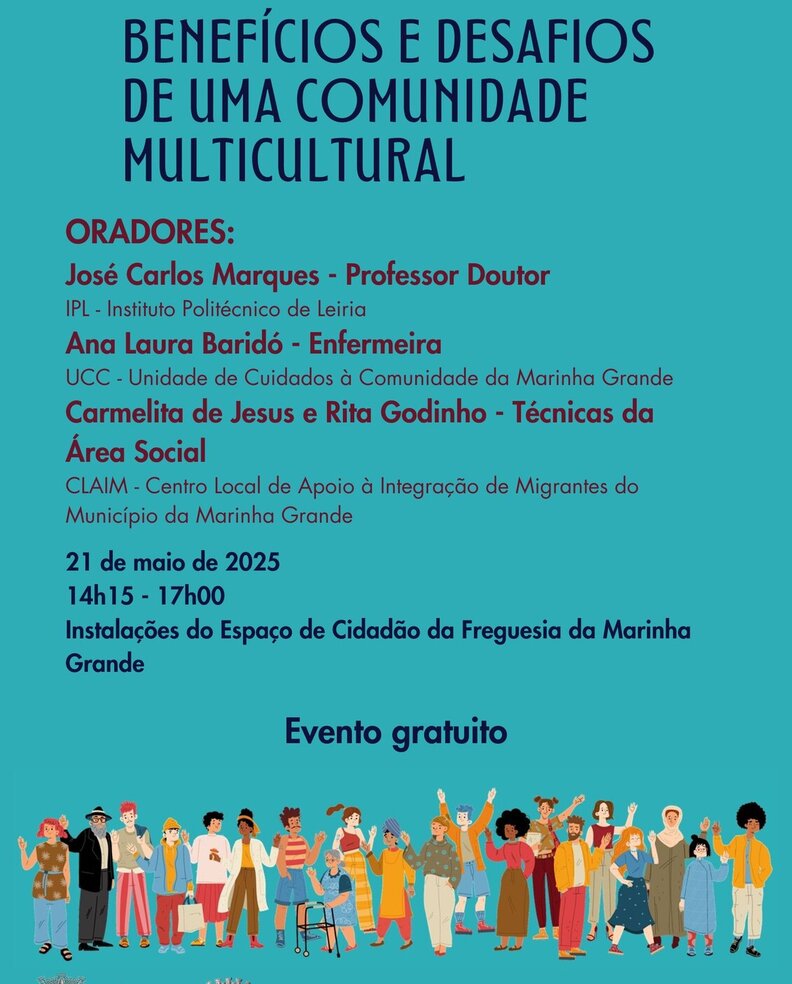 Dando seguimento ao ciclo de conversas “Falar de assuntos da comunidade para a comunidade”, o Gabinete de Apoio Psicossocial (GAP) da Freguesia da Marinha Grande irá dinamizar uma ação de sensibilização para toda a comunidade, no próximo dia 21 de maio de 2025, das 14h15 às 17h00, nas instalações do Espaço de Cidadão da Freguesia da Marinha Grande. O tema escolhido é “Benefícios e desafios de uma comunidade multicultural”, por considerarmos este um tema atual e de grande pertinência. Contamos com a presença de diferentes oradores que irão explorar várias facetas desta complexa temática e promover uma reflexão.