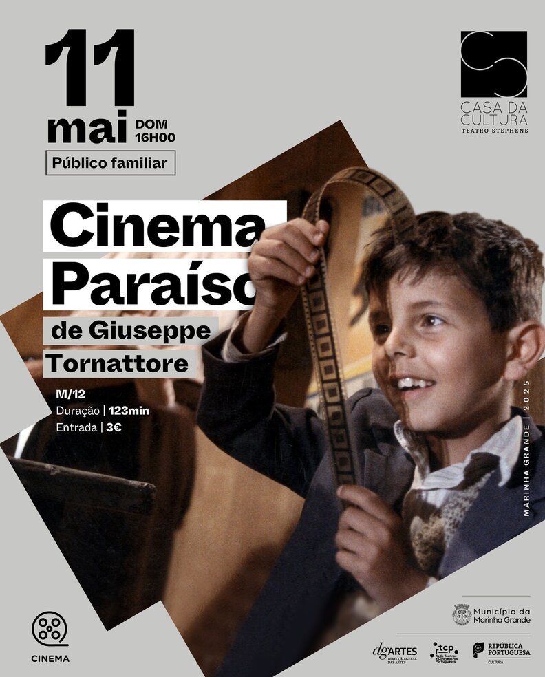 A Câmara Municipal da Marinha Grande vai retomar as sessões de cinema no Teatro Stephens, já no próximo domingo, dia 11 de maio de 2025, pelas 16h00, com a exibição do aclamado filme “Cinema Paraíso”, de Giuseppe Tornatore.
