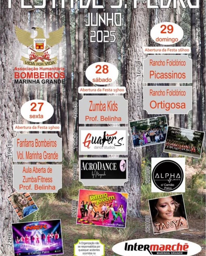 É já nos próximos dias 27, 28 e 29 de junho que se realizam as Festas de São Pedro, nos Bombeiros da Marinha Grande, com a seguinte programação: