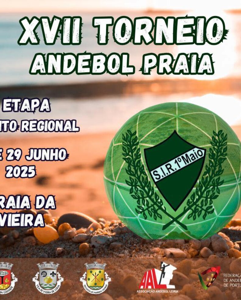 Nos dias 28 e 29 de junho de 2025, a Praia da Vieira será palco da 1.ª etapa do Circuito Regional de Andebol Praia, com a realização do XVII Torneio organizado pelo S.I.R. 1º de Maio.