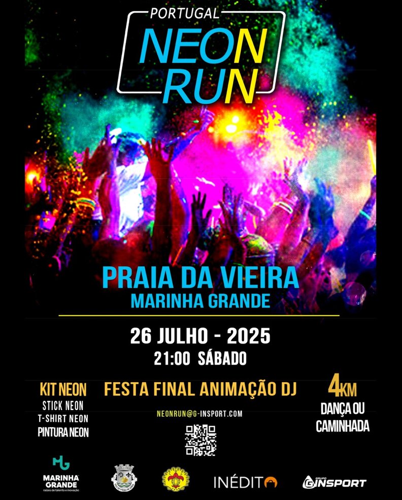A Praia da Vieira, no concelho da Marinha Grande, recebe o Neon Run 2025, no próximo dia 26 de julho, numa noite que promete encher-se de luz, cor, ritmo, energia e diversão.