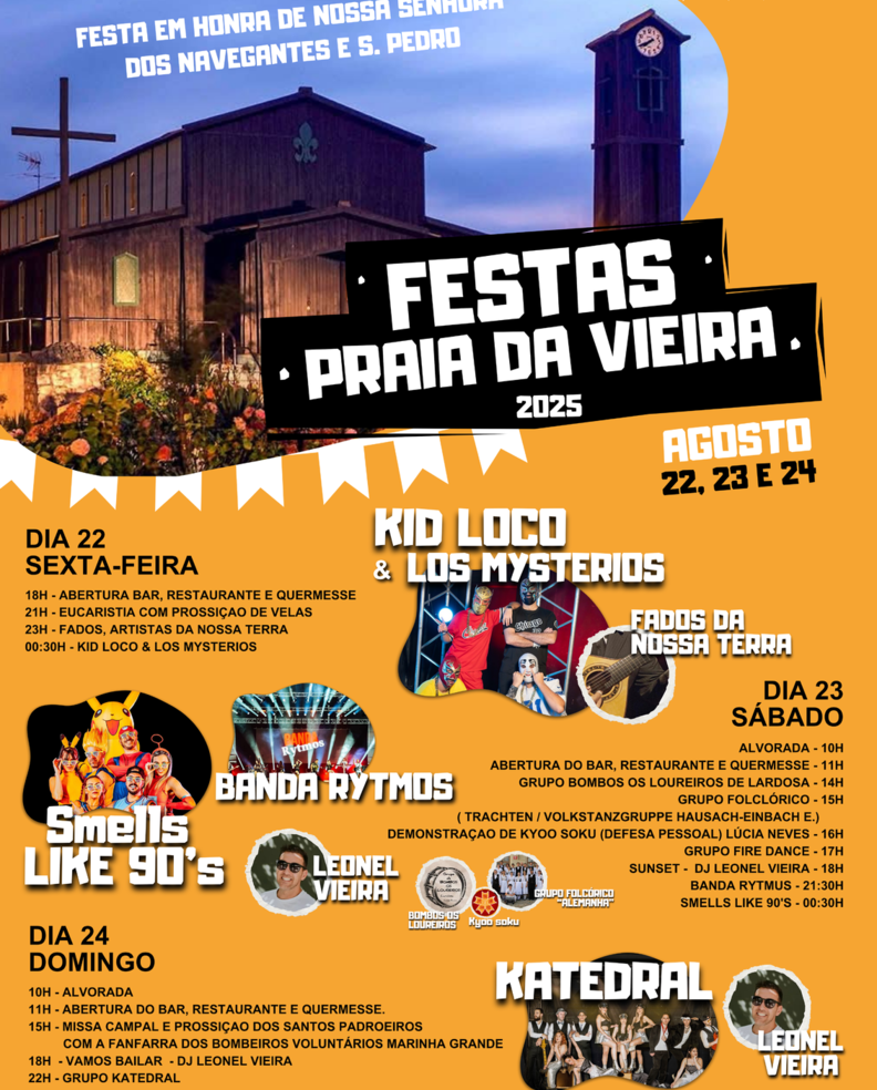 15h00 Missa Campal Seguida da procissão acompanhada pelos bombeiros voluntários da marinha grande