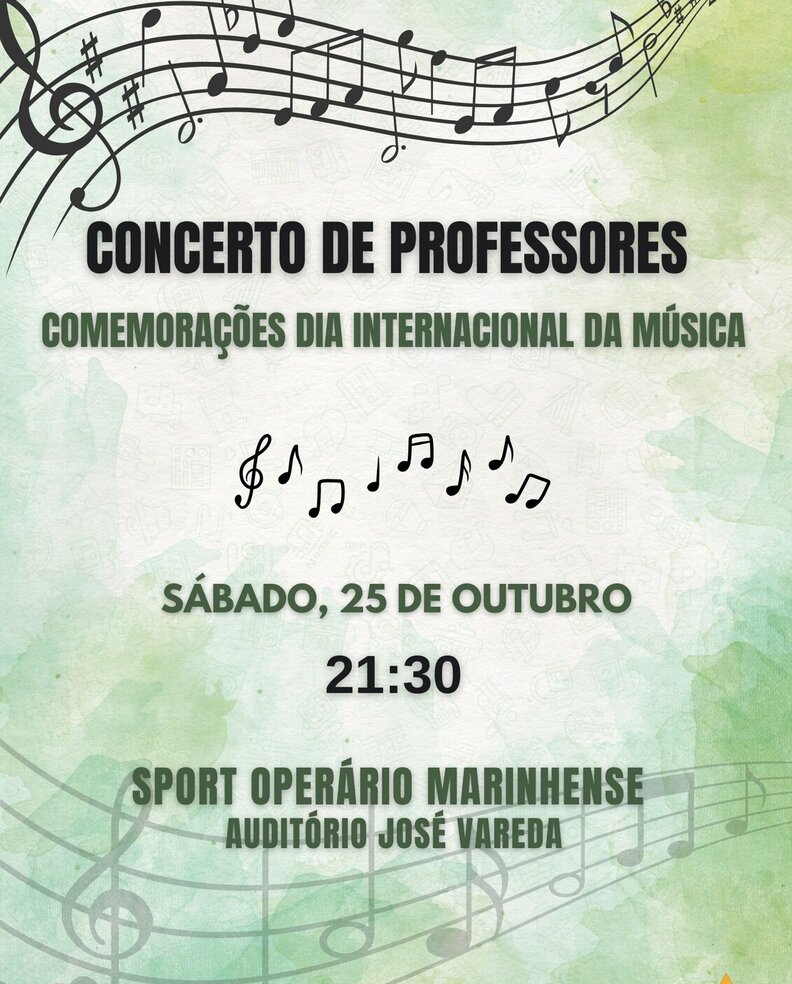 Junte-se a um Concerto de Professores cheio de talento e emoção, em celebração do Dia Internacional da Música. Não perca esta noite especial dedicada à música.