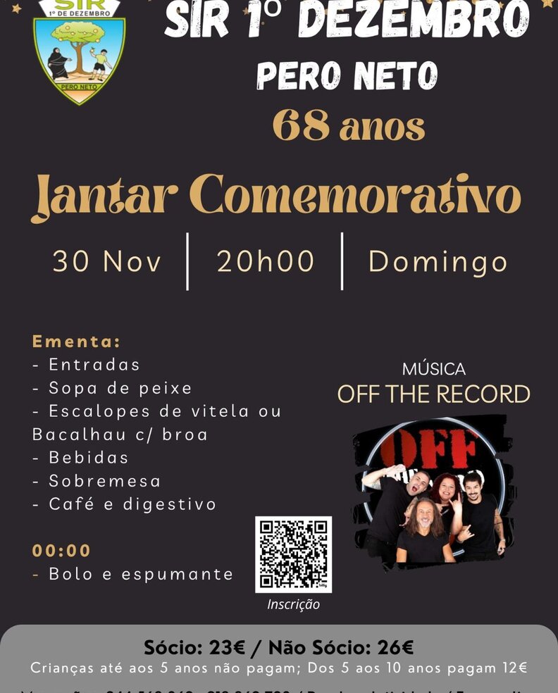 Jantar do 68º Aniversário SIR 1º de Dezembro - Pero Neto - Marinha Grande 🥳🎉