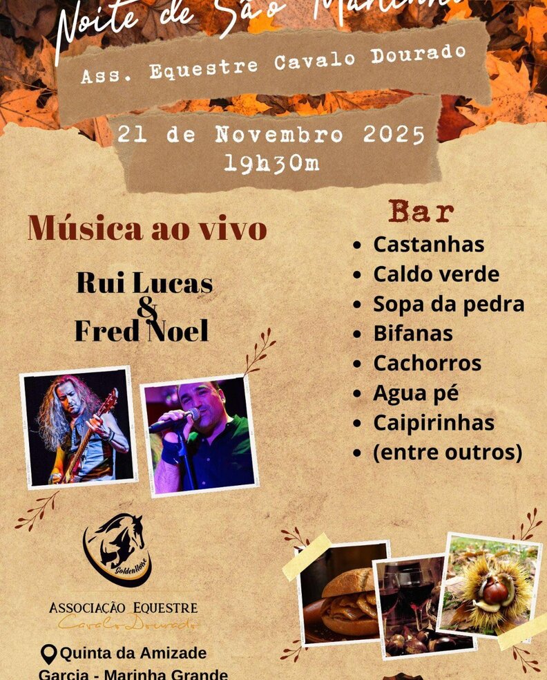 A Associação Equestre Cavalo Dourado convida-te para uma Noite de São Martinho cheia de música, sabor e boa companhia.
