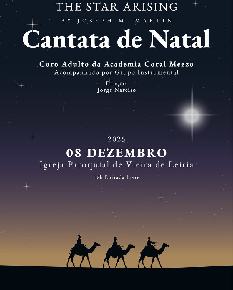 A magia do Natal chega a Vieira de Leiria com a Cantata “The Star a Rising”, interpretada pelo Coro Adulto da Academia Coral Mezzo, acompanhado por grupo instrumental, sob direção de Jorge Narciso.