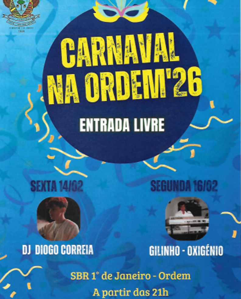 O Carnaval na Ordem ’26 promete animar a freguesia da Ordem com dois dias de música e celebração, num ambiente festivo e aberto a toda a comunidade.