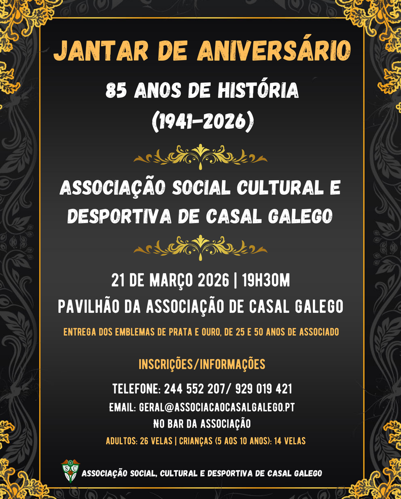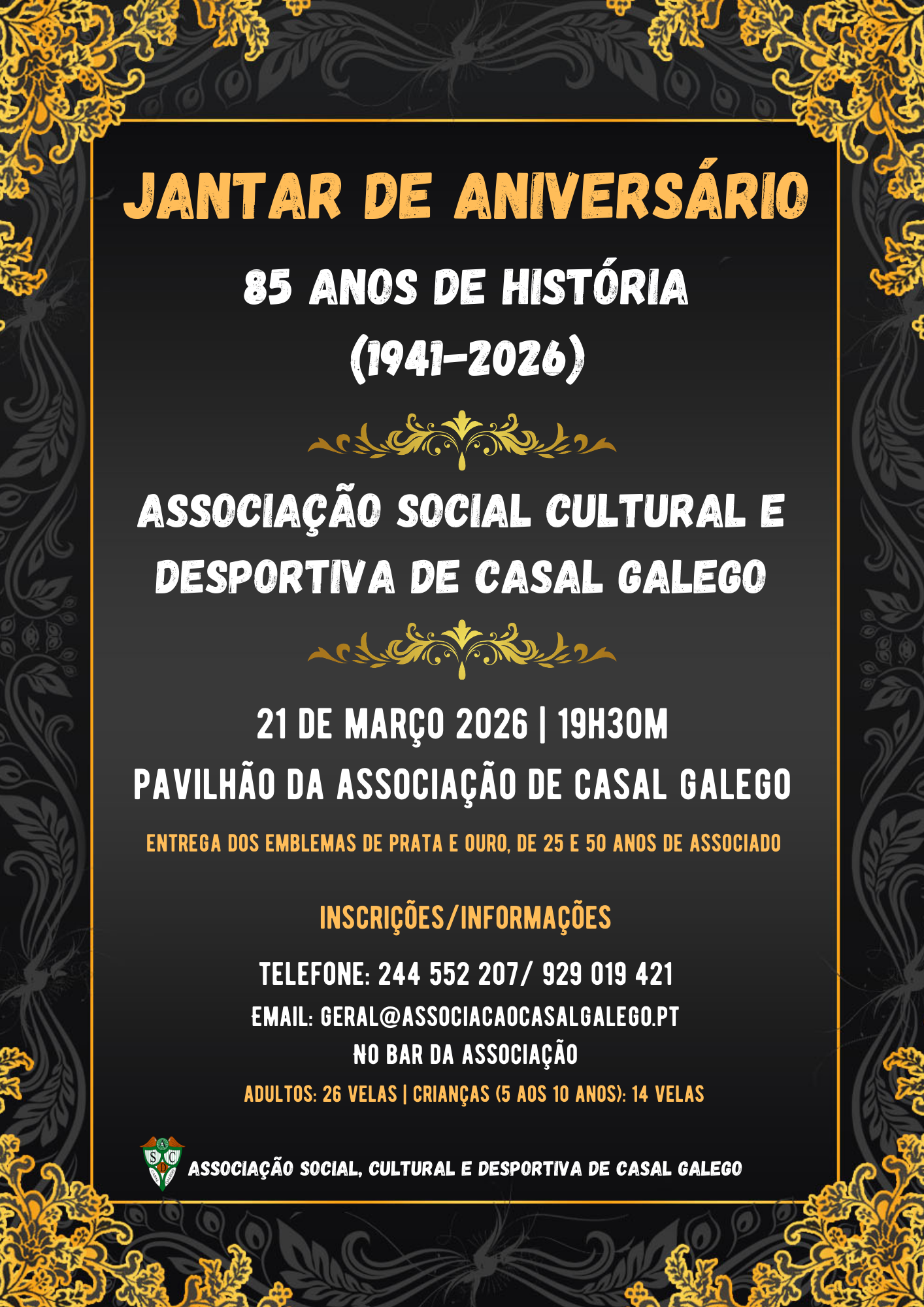 A Associação Social, Cultural e Desportiva de Casal Galego celebra 85 anos (1941–2026) e quer festejar contigo!
