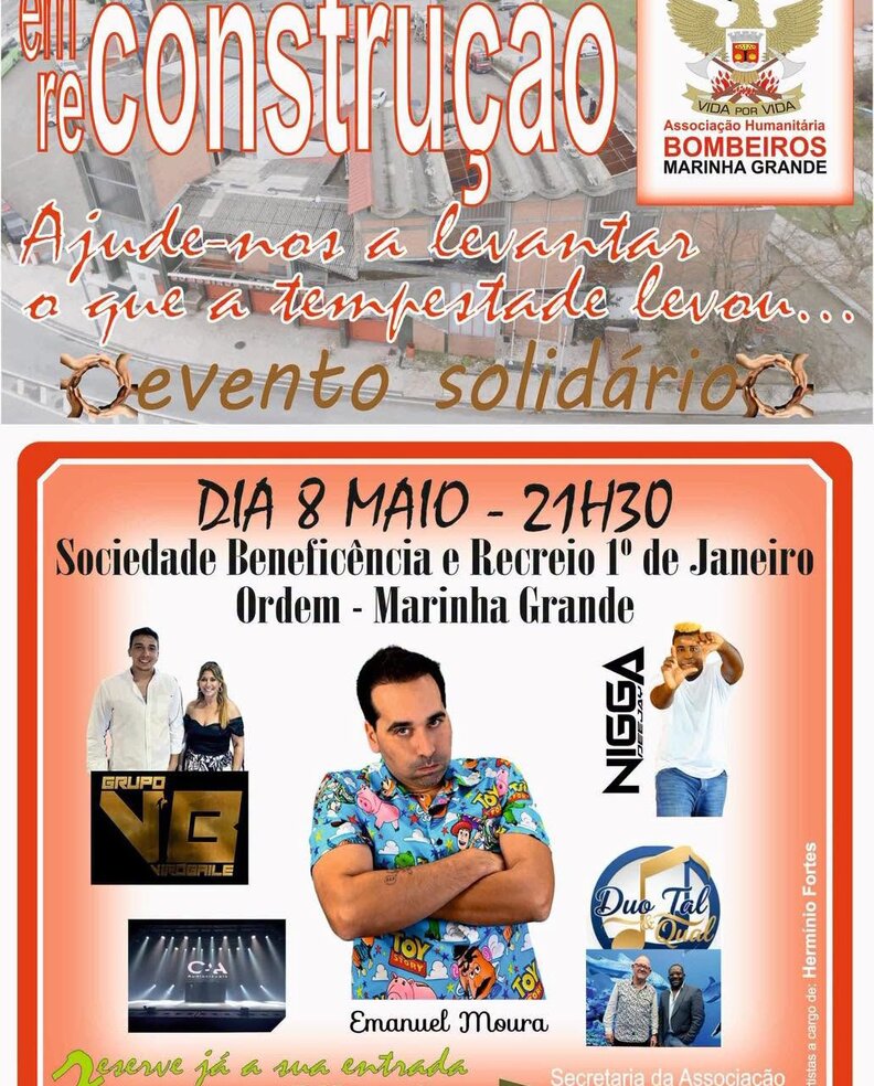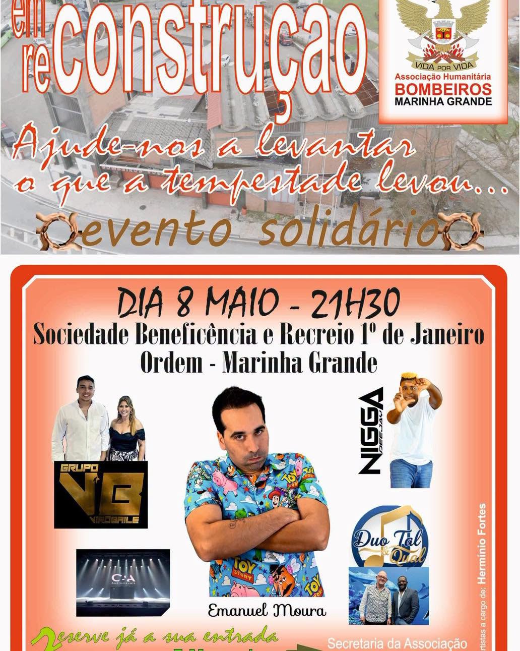 No dia 𝟖 𝐝𝐞 𝐦𝐚𝐢𝐨, 𝐚̀𝐬 𝟐𝟏𝐡𝟑𝟎, junta-te a nós na Sociedade Beneficência e Recreio 1.º de Janeiro (Ordem – Marinha Grande) para uma noite especial de solidariedade.