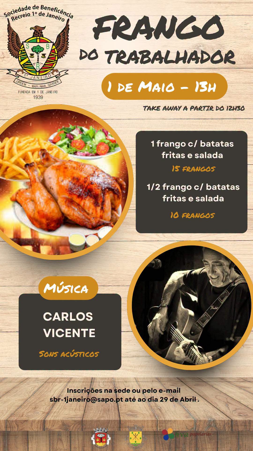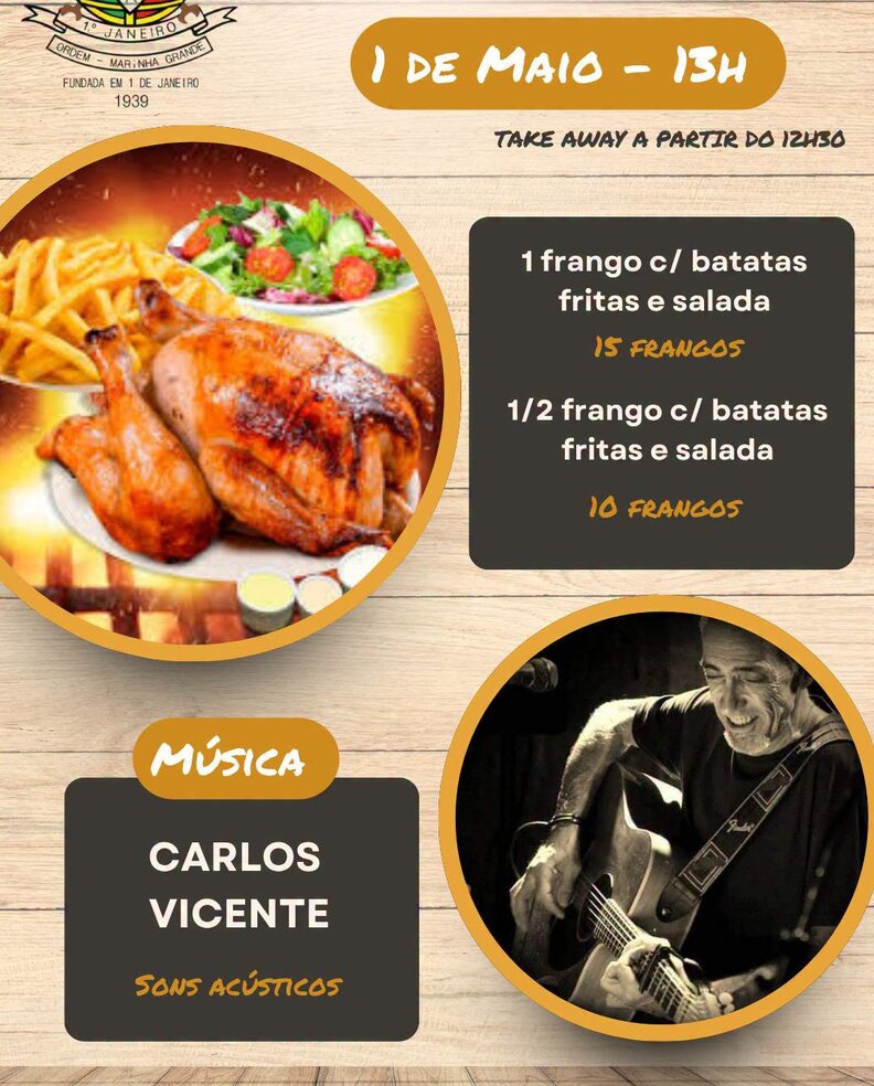 Celebre o Dia do Trabalhador connosco! Desfrute de um delicioso frango assado, acompanhado por boa música e excelente animação.