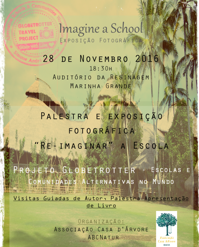 E foi da sua viagem pelo mundo, com 33 projetos educativos alternativos visitados através de 15 países diferentes, que nasceu a sua partilha em forma de livro e exposição fotográfica. Essa partilha será feita agora de forma privilegiada com a presença de Simone André da Costa. Uma partilha inspiradora baseada em alguns dos projetos visitados, como Escolas da Floresta ou Forest Kindergarten, Escolas e Jardins-de-infância Waldorf, Montessori, Camphills, Ecoaldeias e Escolas Verdes, como a Green School Bali, na Indonésia.