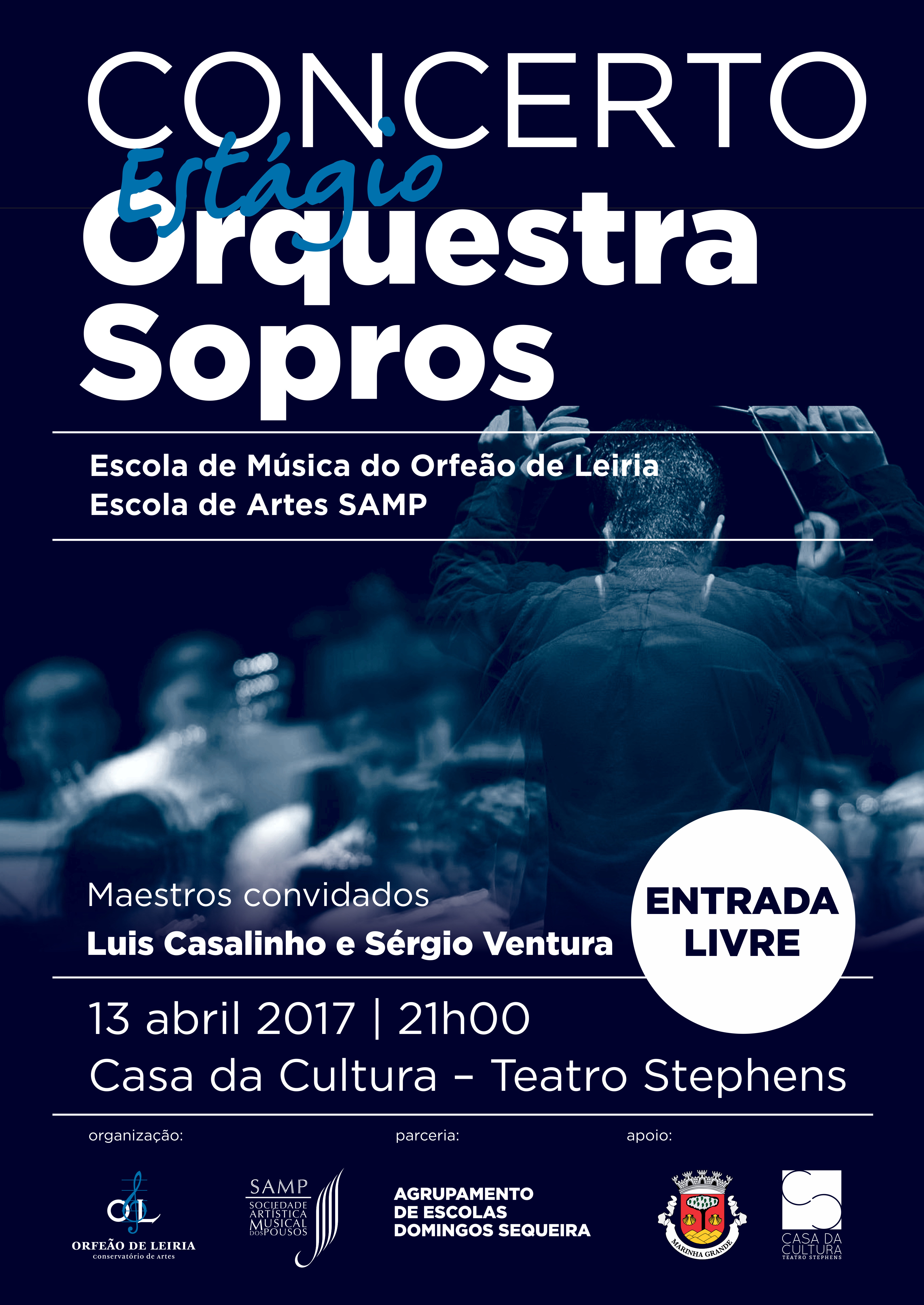Concerto Final do Estágio de Orquestra de Sopros que assinala o trabalho desenvolvido por músicos da região durante uma semana intensiva, sob a batuta dos maestros Luís Casalinho e Sérgio Ventura. Este estágio é realizado numa parceria entre o Orfeão de Leiria - Conservatório de Artes, a Escola de Artes da Sociedade Artística e Musical dos Pousos e o Município.