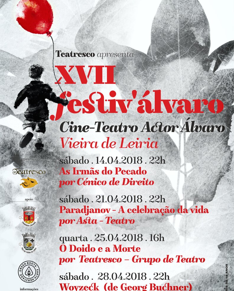 O Teatresco - Grupo de Teatro, em colaboração com a Câmara Municipal da Marinha Grande e a Junta de Freguesia de Vieira de Leiria, promove o XVII Festiv' Álvaro, entre os dias 14 e 28 de abril, no Cine-Teatro Actor Álvaro, situado no Largo da República, em Vieira de Leiria.