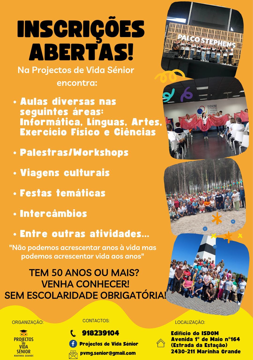 PROJECTOS DE VIDA SÉNIOR TEM INSCRIÇÕES ABERTAS