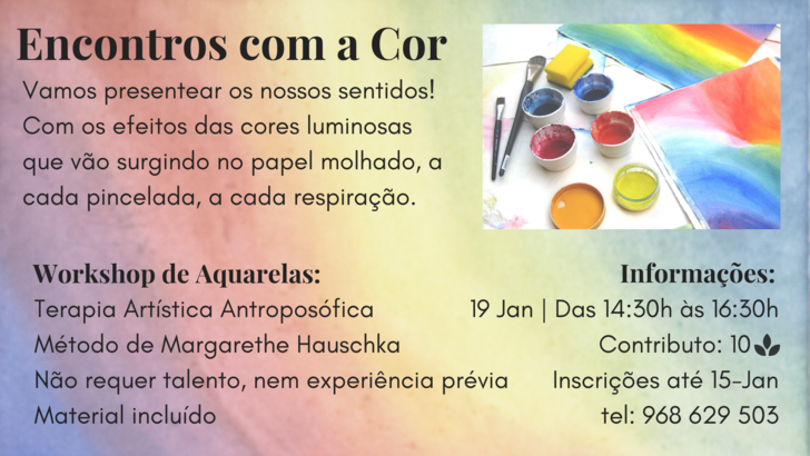 Neste Workshop vamos trabalhar com aguarelas, seguindo o método de Terapia Artística Antroposófica.