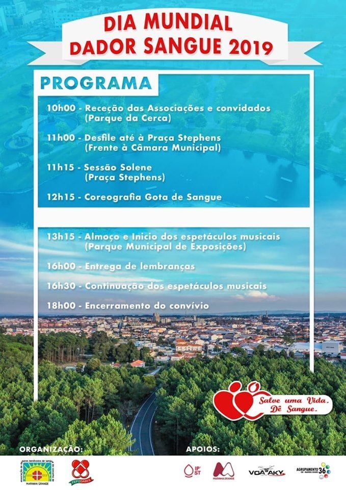 A cidade da Marinha Grande recebe este domingo, dia 16 de junho, as comemorações do Dia Mundial do Dador de Sangue, com um conjunto de atividades abertas ao público.