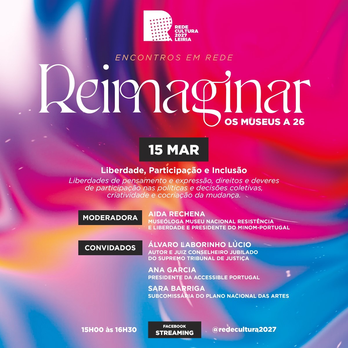 Na próxima segunda-feira, dia 15 de Março, às 15h00, terá lugar o segundo webinar deste ciclo para refletir sobre Museus, liberdade, participação e inclusão. A emissão poderá ser acompanhada na página de facebook da Rede Cultura 2027.