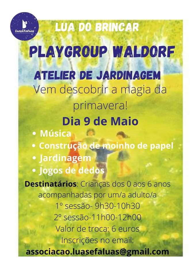 No âmbito do projeto Lua do Brincar, promovido pela Associação Luas&Faluas, vimos dar-vos a conhecer a atividade que vai realizar-se no dia 9 de Maio: Atelier de Jardinagem, Playgroup Waldorf