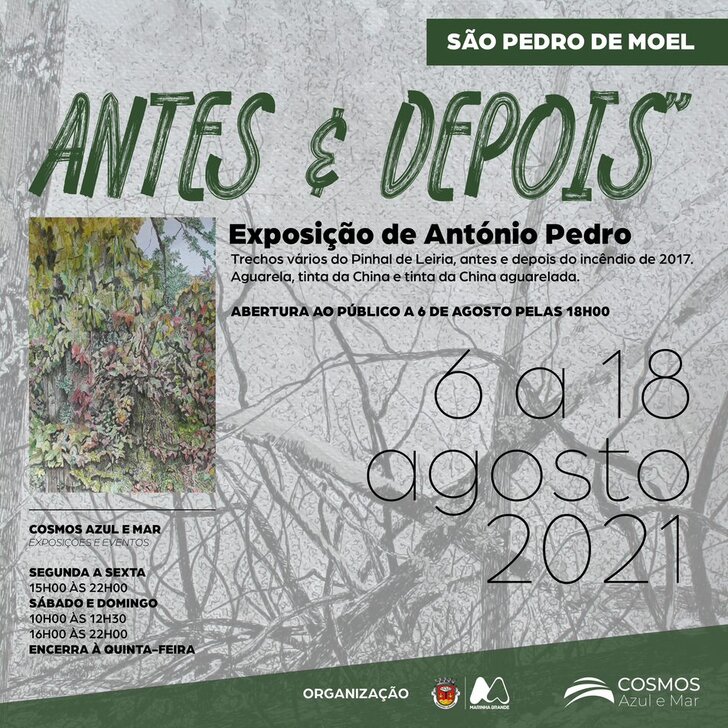 Na Sala Mar e na Sala Cosmos, situadas no 1º andar do edifício, vai ser apresentada a exposição de pintura de António Pedro intitulada "Antes & Depois, com vários trechos do Pinhal de Leiria, antes e depois do incêndio de 2017. As obras revelam a utilização de técnicas artísticas como aguarela, tinta da China e tinta da China aguarelada.