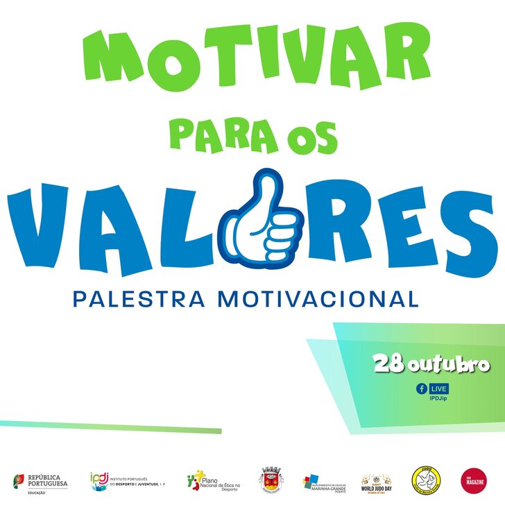 Integrada nas comemorações do Dia Mundial do Judo, 28 de outubro, terá lugar na Escola Secundária Eng.º Acácio Calazans Duarte, na Marinha Grande, pelas 15h00, a palestra motivacional «Motivar para os valores» dirigida aos alunos do Agrupamento de Escolas Marinha Grande Poente.