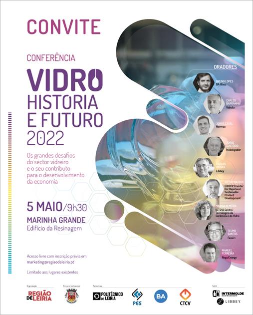 O jornal Região de Leiria, com a parceria da Câmara Municipal da Marinha Grande, promove a "Conferência Vidro – História e Futuro", iniciativa que se associa ao Ano Internacional do Vidro e se realiza no próximo dia 5 de maio, a partir das 09h30, no Edifício da Resinagem.