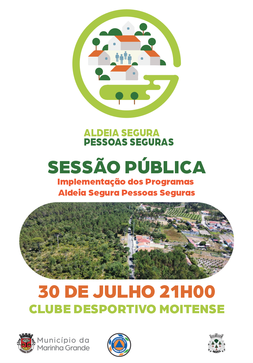 A Câmara Municipal da Marinha Grande, através do Serviço Municipal de Proteção Civil, vai realizar a sessão de informação sobre os programas “Aldeia Segura” e “Pessoas Seguras”, no Clube Desportivo Moitense, na freguesia da Moita, no dia 30 de julho, às 21h00, cuja entrada é livre.