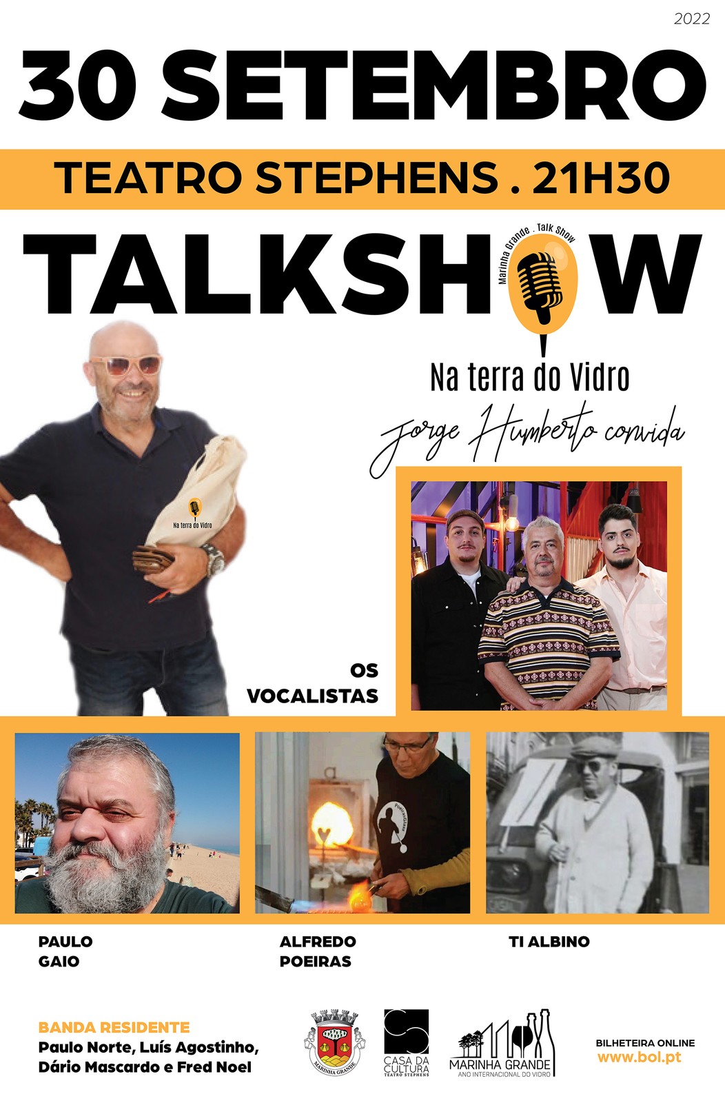 O próximo Talk Show da Série “Na Terra do Vidro, Jorge Humberto convida” realiza-se no dia 30 de setembro (sexta-feira), pelas 21h30, na Casa da Cultura Teatro Stephens, na Marinha Grande.