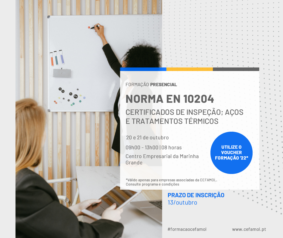- Dotar os formandos de conhecimento gerais da norma EN 10204 – requisitos de tipo de inspeção, classificação de aços e tratamentos térmicos e superficiais; - Analisar os requisitos da norma EN 10204 – tipos de inspeção e reconhecer as diferenças;