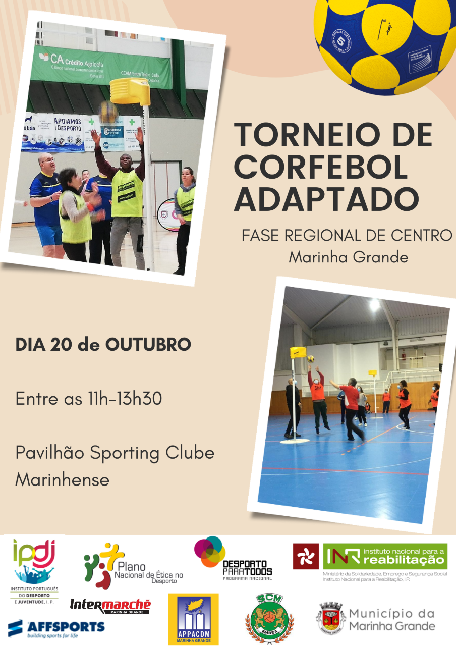 Na próxima quinta-feira, 20 de outubro, a Federação Portuguesa de Corfebol vai realizar a fase regional de Corfebol Adaptado para atletas com deficiência intelectual com as equipas do distrito de Leiria, no Pavilhão do Sporting Clube Marinhense.