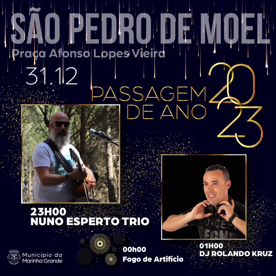 Venha celebrar a passagem de ano à Praça Afonso Lopes Vieira, em São Pedro de Moel, numa iniciativa organizada pela Câmara Municipal da Marinha Grande.