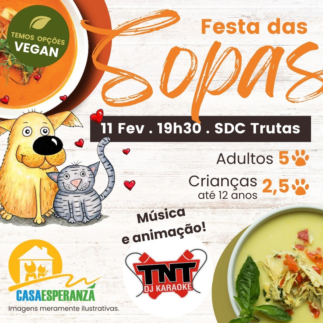 Tem lugar a 11 de fevereiro, a Festa das Sopas da Casa Esperanza, por volta das 19h30, na Sociedade Desportiva e Cultural das Trutas.