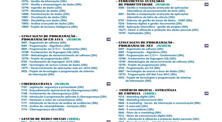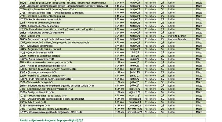 Aqui se apresentam as atividades relacionadas com Competências Digitais, Educação e Formação de Adultos, Emprego+Digital 2025 (ativos empregados), Jovem + Digital, Vida Ativa Jovem e Ativos Desempregados.
