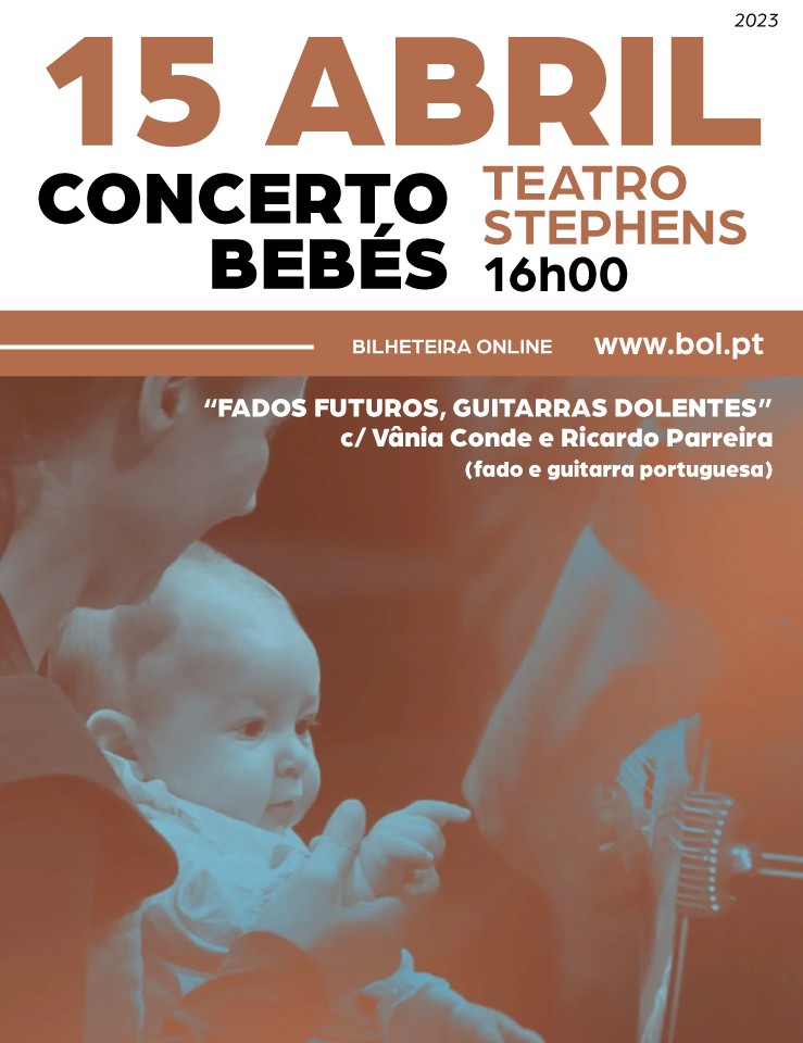 A Casa da Cultura - Teatro Stephens, na Marinha Grande, apresenta o Concerto para Bebés “Fados futuros, guitarras dolentes”, com a participação dos convidados Vânia Conde e Ricardo Parreira (fado e guitarra portuguesa), no dia 15 de abril , pelas 16h00.