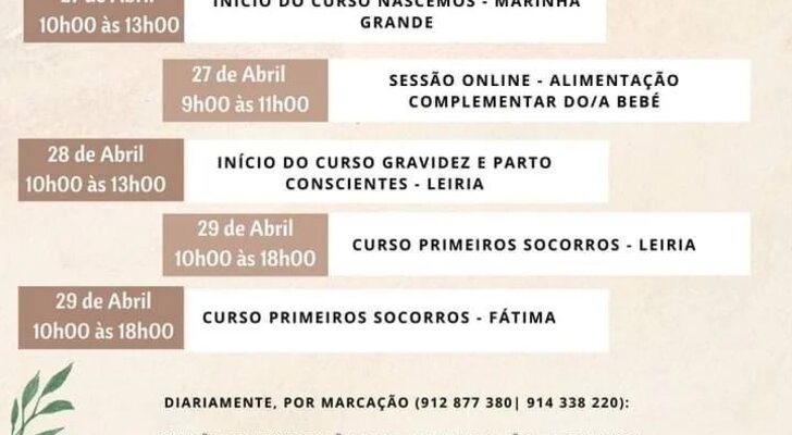 27 de Abril - Início do curso Nascemos - Marinha Grande | https://forms.gle/TiUicnK7kY6X57E28