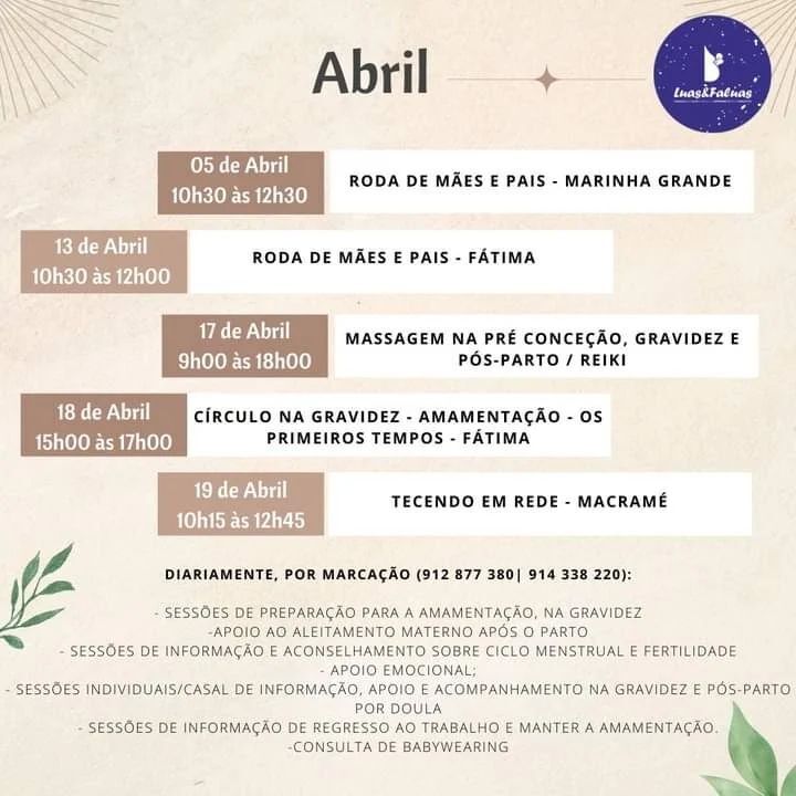 A Associação Luas e Faluas apresenta a sua agenda para o mês de abril: