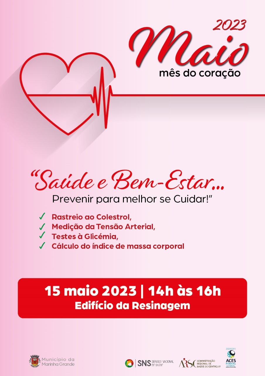 O Município da Marinha Grande e o Centro de Saúde da Marinha Grande celebram “Maio, Mês do Coração”, realizando iniciativas de promoção da saúde no âmbito do tema “Saúde e Bem-Estar… Prevenir para melhor se Cuidar!”.