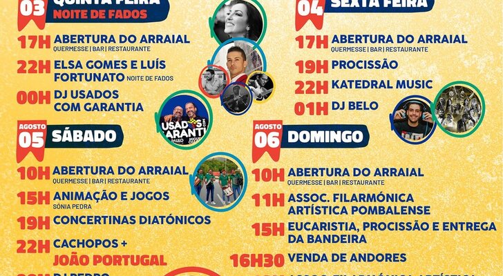 17h00 - Abertura do arraial (quermesse, bar, restaurante)