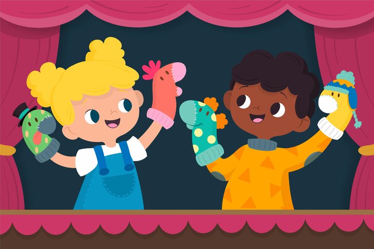 Todas as sessões são diferentes, trabalhando técnicas diferentes: marioneta de luvas, marioneta de sombras, marioneta de fios e marioneta de pauzinho.