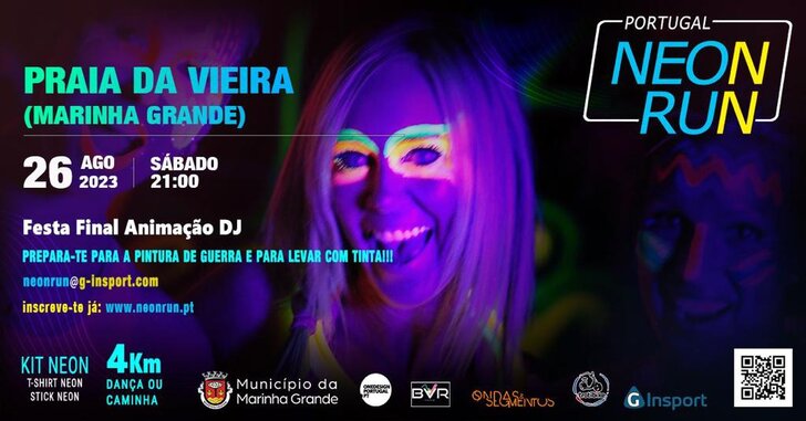 A Praia da Vieira, no concelho da Marinha Grande, vai receber uma onda de luzes, som, atividade desportiva e muita diversão, no dia 26 de agosto, a partir das 21h00, no Largo dos Pescadores, na corrida noturna NEON RUN TOUR 2023.