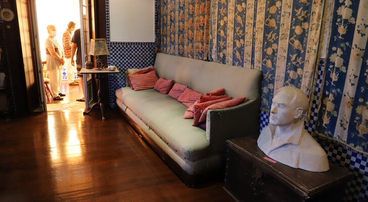 Visitas encenadas à Casa-Museu por Afonso Lopes Vieira e Amélia Rey Colaço: Miguel Linares e Carolina Santarino dão vida às personagens, conduzindo o público pela casa-nau, numa viagem pela vida e obra do poeta.