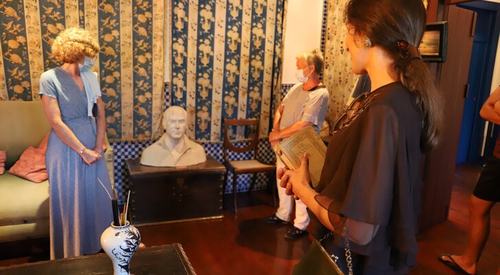 Visitas encenadas à Casa-Museu por Afonso Lopes Vieira e Amélia Rey Colaço: Miguel Linares e Carolina Santarino dão vida às personagens, conduzindo o público pela casa nau, numa viagem pela vida e obra do poeta.