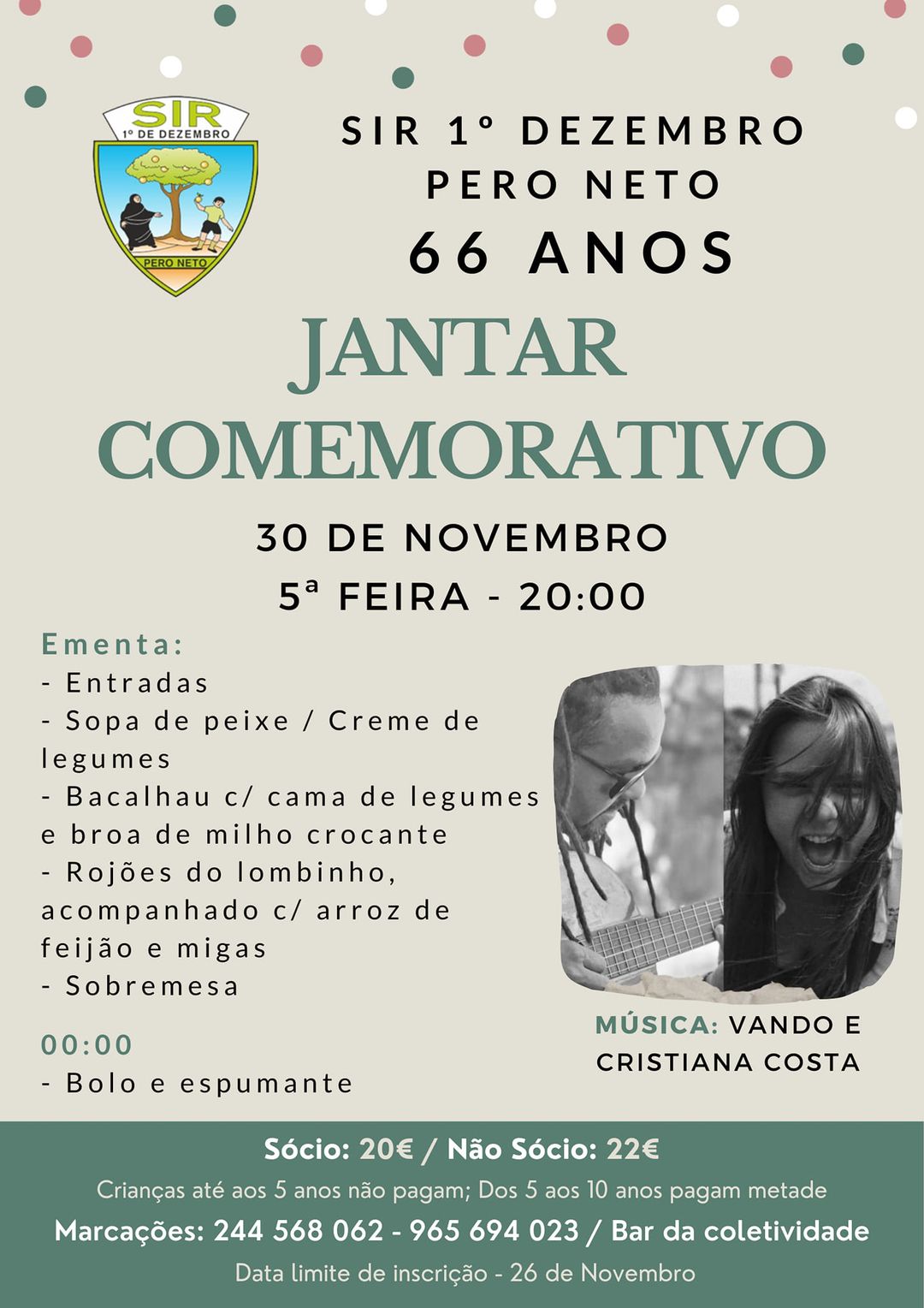 JANTAR DE ANIVERSÁRIO DA SIR 1.º DE DEZEMBRO