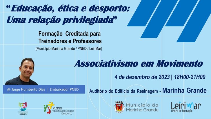 A iniciativa integra-se no ciclo de workshop’s “Associativismo em Movimento”, que tem vindo a realizar desde o início do ano. O evento de dezembro é uma organização conjunta do Plano Nacional da Ética no Desporto, Centro de Formação Leirimar e Município da Marinha Grande. Vai representar um espaço de capacitação dirigido a atletas / alunos, encarregados de educação, treinadores, dirigentes e docentes, em torno da disseminação da ética e dos valores inerentes à prática desportiva.