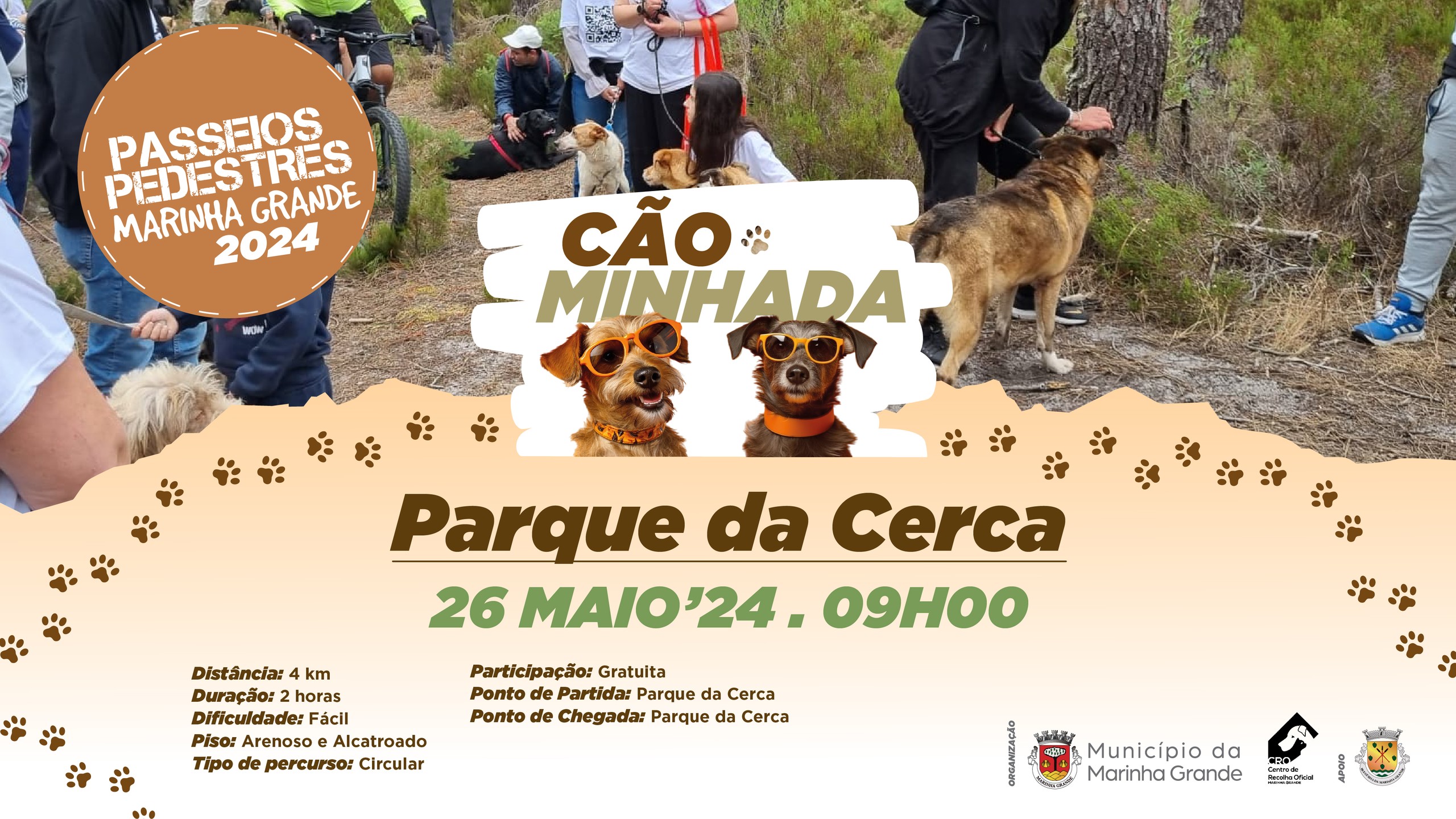 No dia 26 de maio, pelas 9h00, com início e chegada no Parque da Cerca, o Município da Marinha Grande irá promover uma “Cãominhada”, na qual irão estar presentes alguns dos animais do Centro de Recolha Oficial disponíveis para adoção.